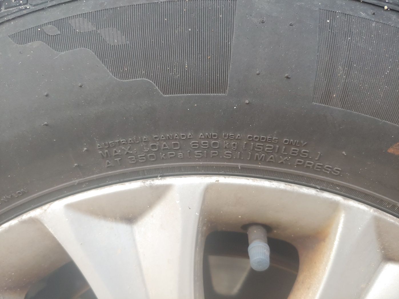 자동차의 타이어를 보시면 측면에 위 이미지처럼 숫자와 단위가 쓰여있습니다. 타이어 공기를 채워주는 기기들이 보통 PSI 단위를 쓰니까 PSI 단위 앞에 쓰여있는 숫자를 보십시오. 51 PSI라고 써져 있네요.